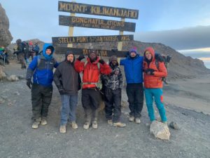 So, our slow plod had begun, just like all the other campers that were at Barafu Camp. Guided by the expertise of our guides and small lights on our head, we had 1400 metres to climb in 4km. I probably would say that this is a steep gradient! Not long into our walk and the Gaffa was the first to break. He complained of struggling to breathe and coldness in his hands. Regular stops were made to accommodate him and looking after the old man and ensuring that he made it to the top with us. The other three of us seemed okay at this time. Not for long though. I eventually broke, two hours from the top. My body felt like it had nothing to give. Completely lacking in energy, I was now dragging myself up this mountain, looking at the stars to try to inspire and guide me. Those people who don’t believe that altitude sickness is a thing are very mistaken. How I made it I don’t know, and what I can remember is a slight blur, although Sam supported me very well up the mountain. I didn’t find his talking very motivational. And told him so!