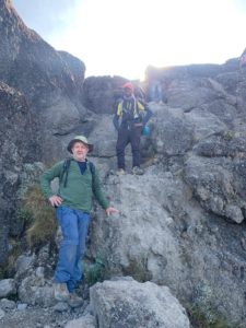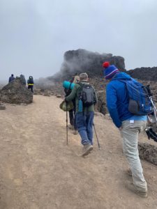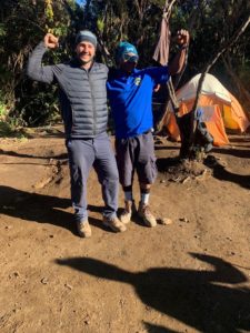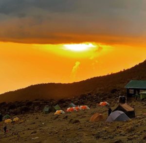 We woke up in stages again. Mike and I were the first risers. We set off with cameras to catch that magical morning sunrise. It really is a poetic and remarkable way to start the day, and one I wish I could experience more when I return to reality. Everyone now finally surfaced we all convened in the main tent for breakfast. Our walk today was to Barafu Camp or base camp! The final stop before we attempted to reach the summit. The walk was short but steep. We rested, as always, at different points along the way. At one of the last resting places we all remarked about a couple of Arab/French lads who we saw were rushing up the mountain. Perhaps they were in pursuit of an Instagram photo (it doesn’t always need to be instant!).