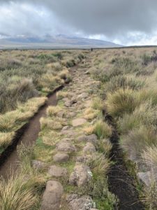 It was cloudy as we set off. We were walking to some crossroads on the edge of the mountain. Yesterday it had been pointed out to us about another camp on a different route was directly opposite us on another ridge. During the day we were able to trace their pinpoint shapes on the horizon before we merged and joined the same route. It was here that we realised how lucky those previous, quiet days were as we went from 15 people to over 200 people now crawling up the mountain. A toxic combination of loud talking, colourful accents and loud music made for an unappealing part of our trip.