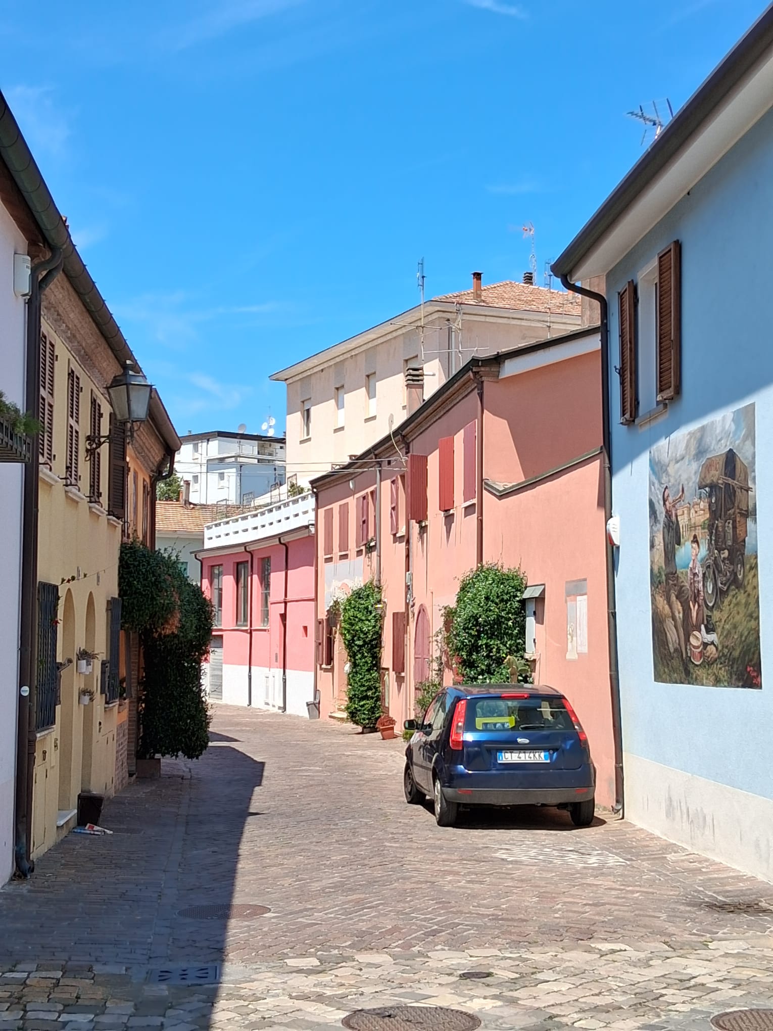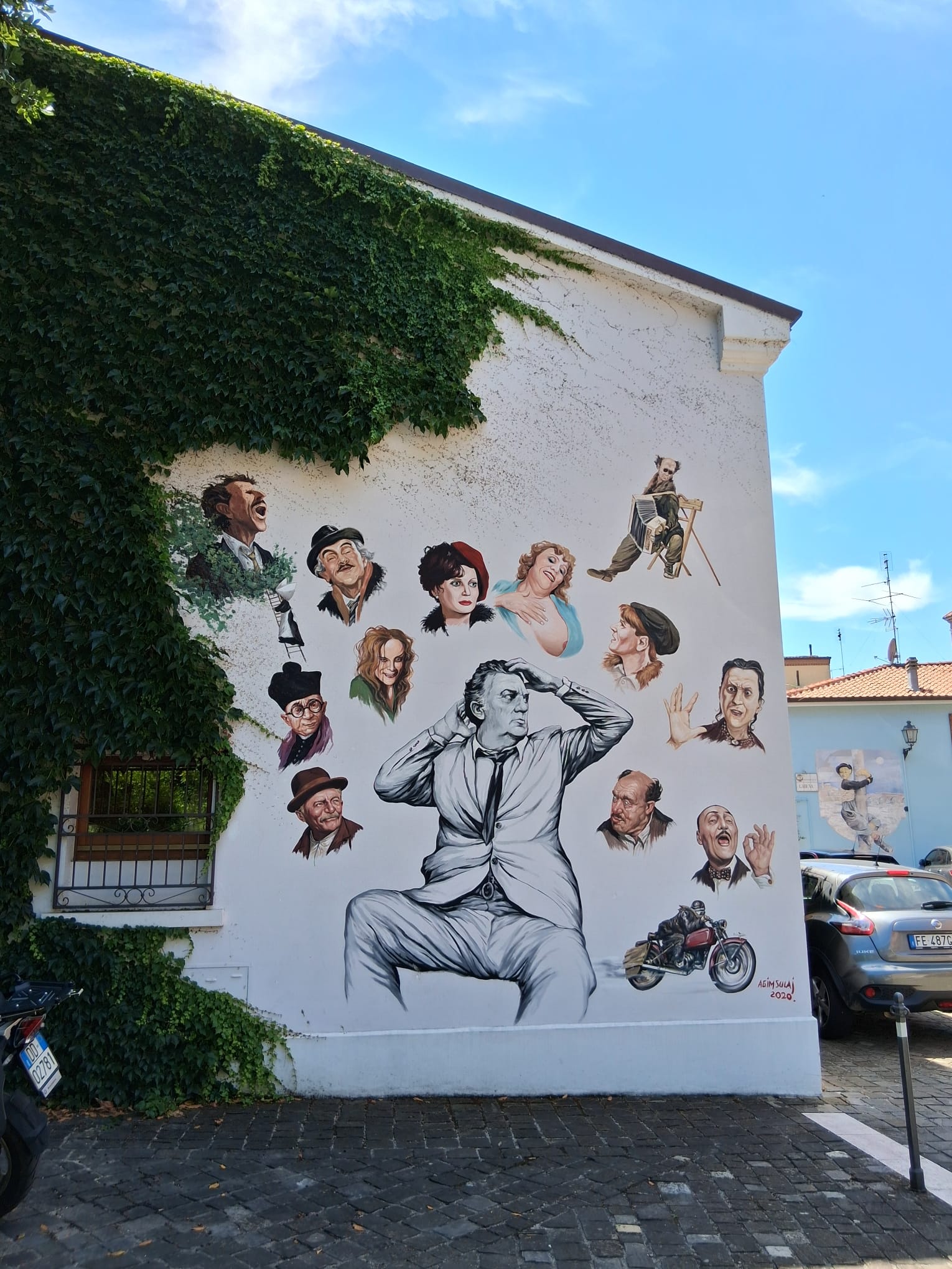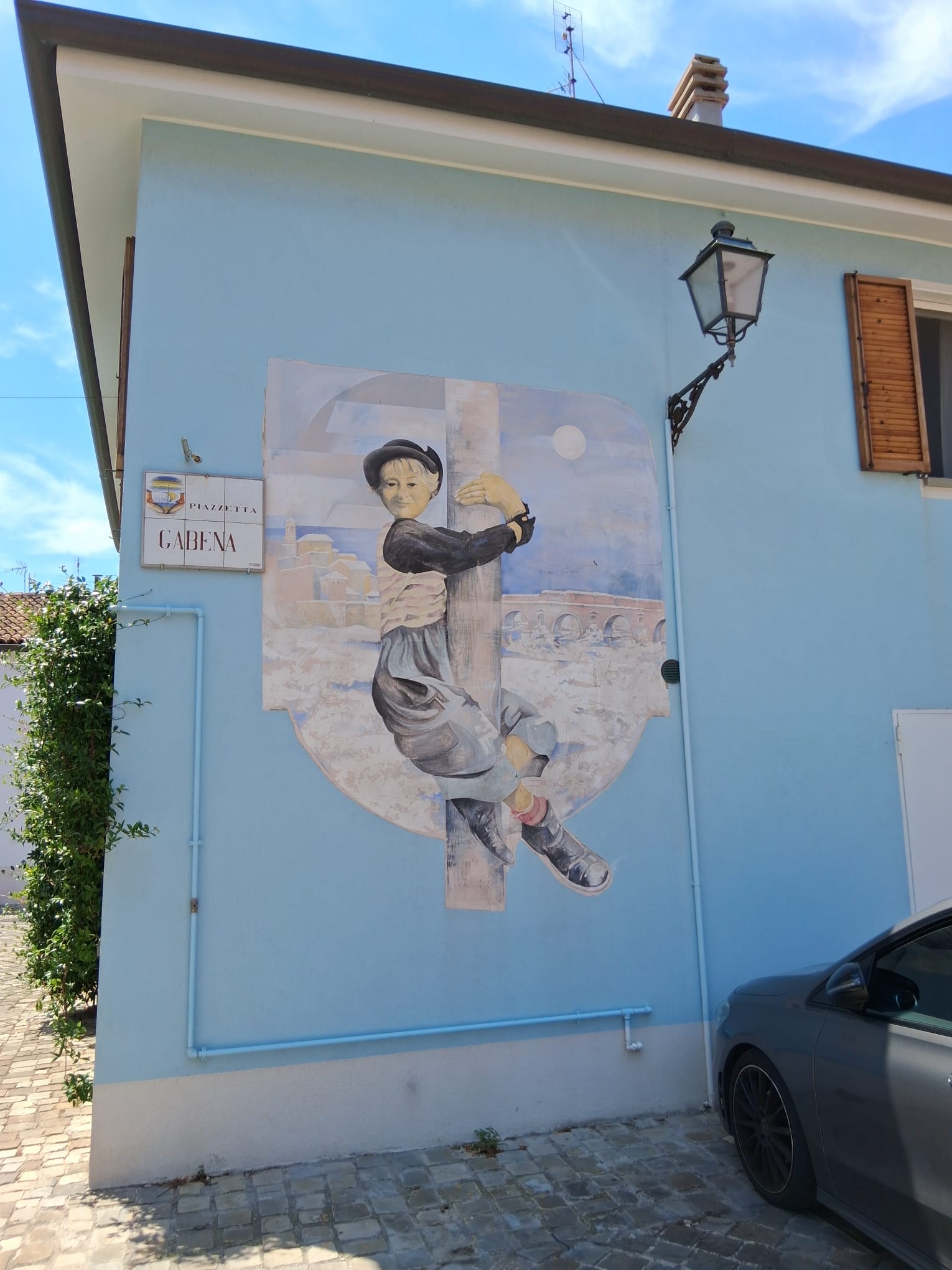 The final place we visited in Rimini was the charming murals in the San Giuliano area. Step across the Tiberius bridge and explore the vibrant and charming neighbourhood. Houses are awash with pastel colours with murals artistically painted on them. This is a community collaboration in honour of the city’s famous son (Federico Fellini), local legends and traditions, everyday life and historical narratives.