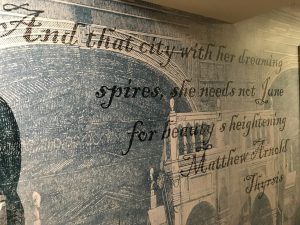 I have a soft spot for Oxford. I had been taken there as a kid on a number of occasions. In 2014 a friend and I walked the Thames path in 9 days. The first few days were somewhat boring and then….. Oxford. The ‘dreaming spires’, the curious colleges, the stunning architecture, the plethora of push bikes, the pubs – surely this is a poet’s dream. Publishing brands of renown, well known industrial brands, history etched all over, museums, etc. Perhaps most tourists are drawn to its filming locations as used in the Harry Potter films or sit and muse over Morse, Lewis and now Endeavour episodes-so far, I haven’t been tempted in.